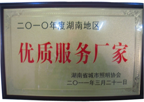 湖南省城市照明协会优质服务厂家证书