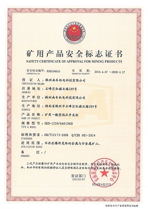 矿用产品安全标志证书KA证书(GKD-1250)