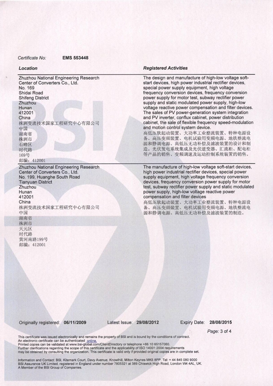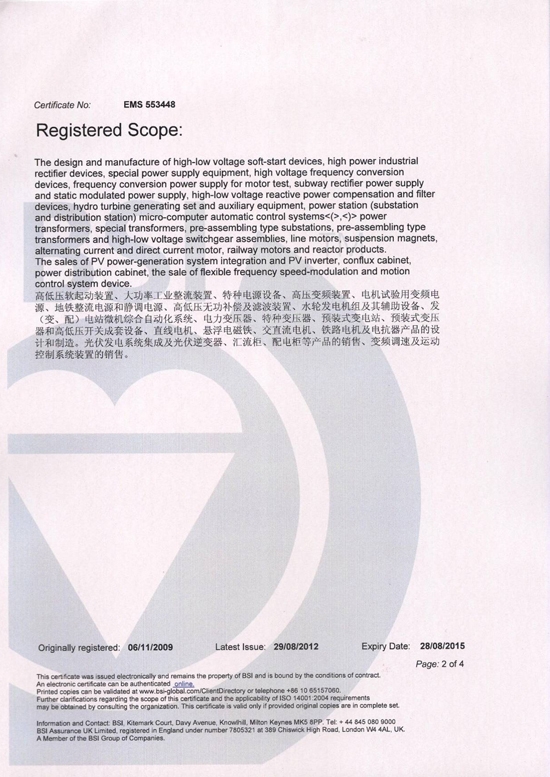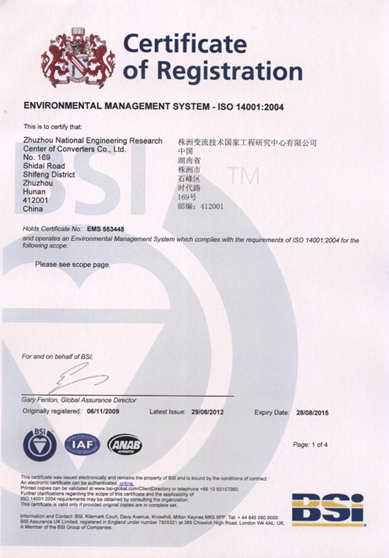 环境管理体系认证证书