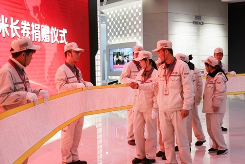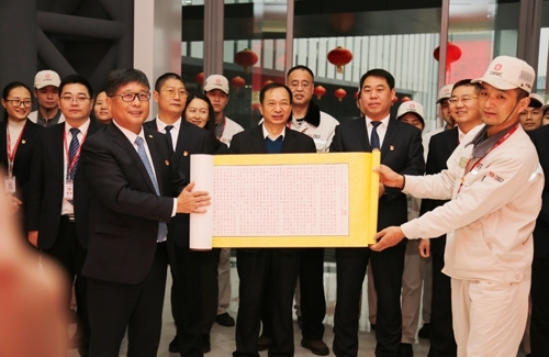 书卷长19米,寓意十九大胜利召开;宽40.5(81/2)厘米,寓意成立81周年的公司风华正茂;1000行字,寓意公司在党的领导下基业长青。该书卷被收藏在科技文化展示中心展览,供员工参观学习。
