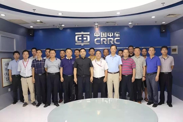 8月3日,湖南湘投控股集团有限公司党委委员、副总经理郭平等一行来公司考察交流,株洲所副总经理彭华文及株洲机电相关负责人陪同考察交流。