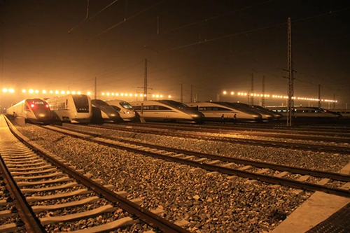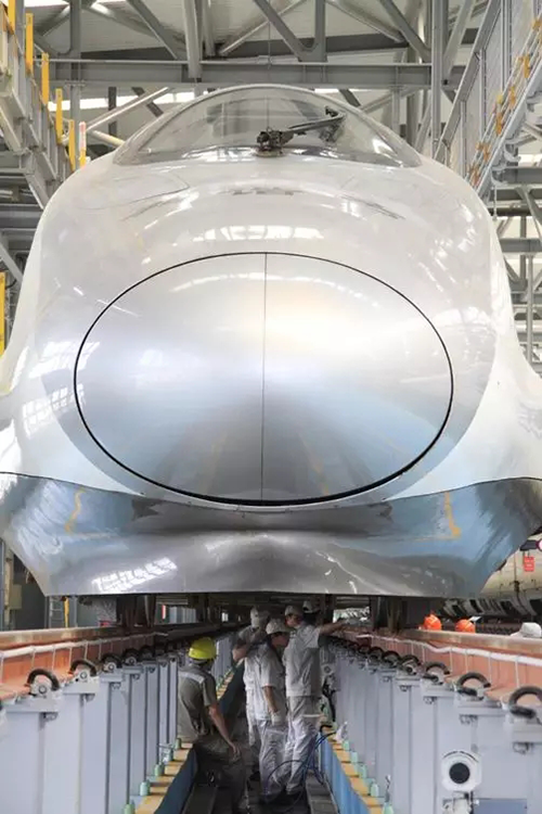 经过60万公里的运营考核,2017年6月26日,两列中国标准动车组“复兴号”,以350公里/小时的速度,在京沪高铁两端的北京南站和上海虹桥站双向首发。无论是运营速度,还是在安全性、舒适性、节能降耗等主要技术指标上,“复兴号”在全球都首屈一指。中国标准动车组的精彩问世,使我国成为世界上高铁商业运营速度最快的国家,为全球高铁树立了新的标杆。