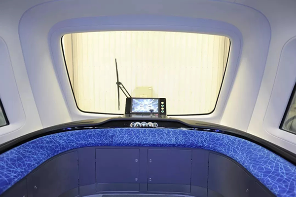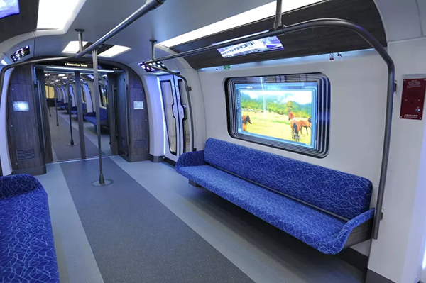 车厢的智能空调,能根据天气和穿衣指数来自动确定合适的温度和湿度,让体感更舒适。照明系统可随时知晓车厢的光线环境,自动调整亮度和色温。还有多媒体曲面屏、自清洁座椅、为听力残疾乘客配备的助听系统……