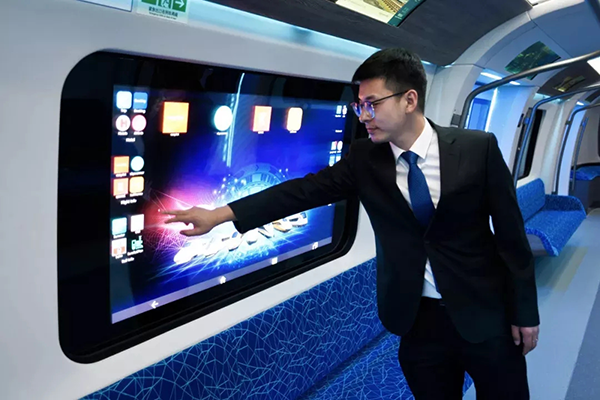 车厢进入“触控”时代。车窗变身为一个触控显示屏,成为能传达各种图文视频信息的“魔窗”。相当于一个超大版的“pad”,乘客只需用手指触摸车窗,就能在车窗上看新闻、浏览网页、购票、刷视频、观看电视直播等,便捷地获取各种服务。