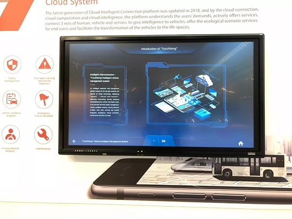 在中车电动“云智通”车辆信息监控中心,可以实时监控到运营中的“巴客龙”,“巴客龙”还建立了零部件全生命周期的跟踪和溯源管理,无论电机、电控、电池的实时状态,还是驾驶员的操作行为。都能通过手机app或电脑客户端全盘掌握,便于了解整车运行状态,降低能耗。“云智通”车辆网平台还提供车辆安全预警服务、车辆智能维保服务、共享互联服务,后期还可灵活实现与政府平台和公交平台的数据交互。