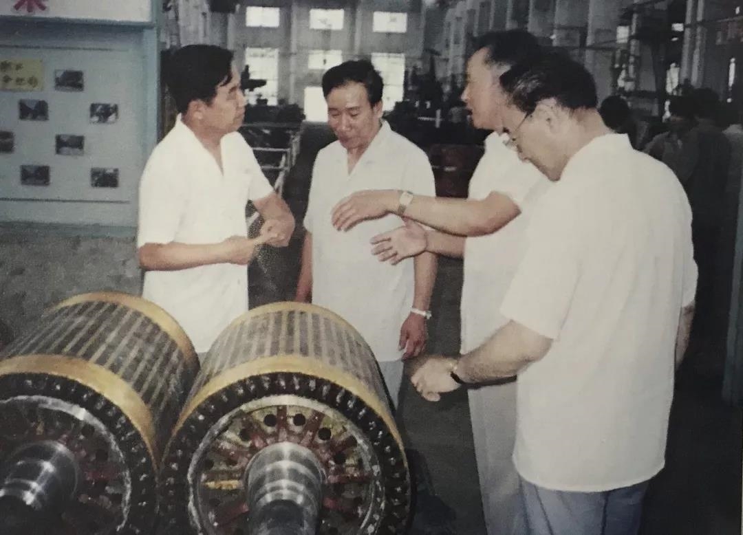 ▲1993年,在张店电机厂了解牵引电动机生产情况