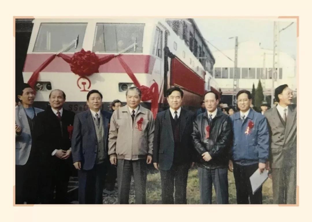 ▲1994年,在株洲电力机车厂出席韶山8型机车试制成功庆祝仪式