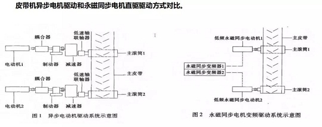公司推出的矿用皮带机永磁直驱系统是依托株洲所轨道交通行业永磁牵引系统技术,联合所内兄弟单位共同发力形成的自主研发产品,系统主要由低速永磁直驱电机、永磁变频器和智能控制系统组成,与传统带式输送机系统相比省掉减速机、液力耦合器,提高了整套驱动系统的传动效率,绿色节能,智能环保。