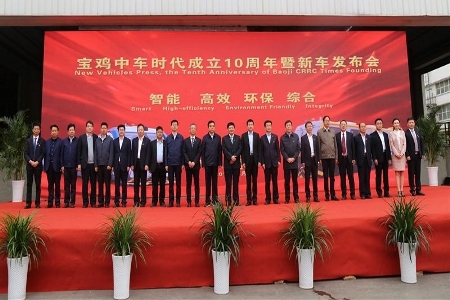 4月9日上午,时代电气轨工事业部宝鸡时代以“智能、高效、环保、综合”为主题的新车发布会在宝鸡时代新铁广场隆重举行。