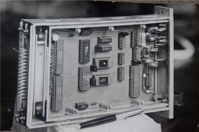 计算机控制上车需要开发一个能够克服电磁干扰的CPU插件,插入到原来的控制机箱里。当时印刷线路板只有双面板可选择,需要到湖南计算机厂制版,周期很长;由于是8位控制器,数据总线、控制总线、地址总线还不太复杂,双层板还能布置得下去,当时双面版只有纯手工布线,先在座标纸上画出草图,再用当时最新的方法,用特定宽度的黑色胶带,贴出线路板PCB。检查也完全是手工进行,线路板制成后还发现了几个问题,最后一个问题是总线的读写控制线反了,这是整个过程中最没有把握的环节,经过反复摸索,最后总算通过了,也加快了试制进度;1984年我们研制出了第一台车载的微机控制插板。