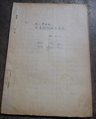 当时的控制软件是手写的,汇编语言先写在纸上,再通过手工编译为可执行代码,再输入到单板机的RAM,检查无误后,再写入EPROM。难能可贵的是,付晋山还保留着这块微机控制线路板和手写的编程软件的原稿。