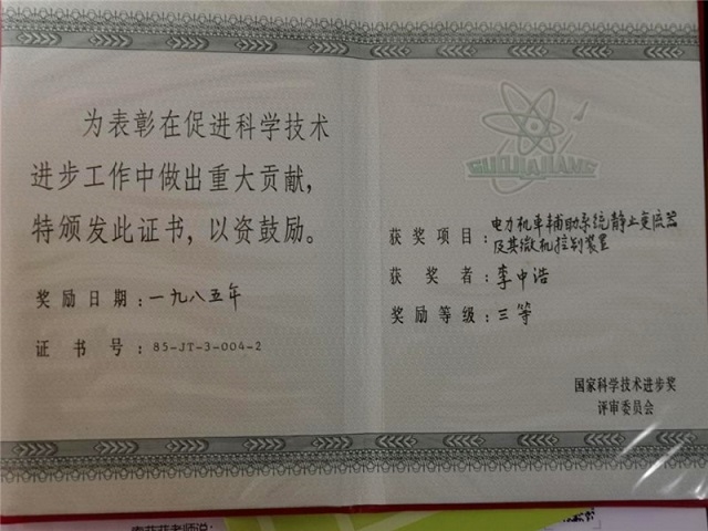 项目组在《铁道学报》1984年第1期开篇的版面上,发表了《电力机车辅助系统静止变流器的研究》这一论文,并在《机车电传动》杂志上发表了《电力机车辅助变流器的微机控制系统》和《一种最佳PVM波微机控制方法》论文。240KVA静止劈相机和微机控制系统这两项成果,之后合起来取名“电力机车辅助系统静止变流器及其微机控制装置”,并获得了国家科技进步三等奖。